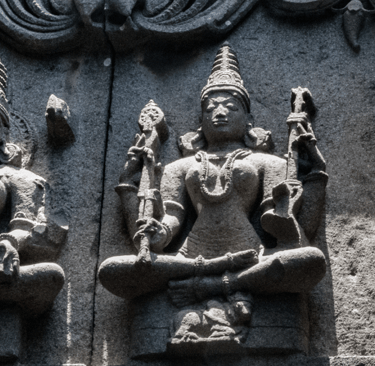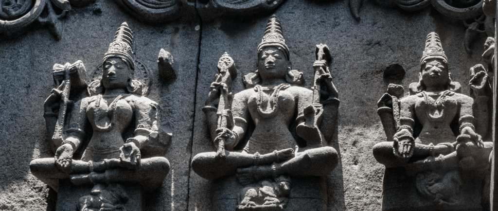 प्रदक्षिणा मार्गावर दोन स्तंभामधल्या वरच्या आडव्या भागावर गणेश, शिव, ब्रह्मा, इंद्र हे स्त्रीरूपात कोरलेले पाहायला मिळतात. त्यांची नवे अनुक्रमे गणेशांनी, माहेश्वरी, ब्राह्मी, कुमारी, वैष्णवी व इंद्राणी अशी आहेत.